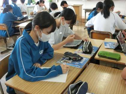 グループで協力し合い、美しいフォームのポイントやその練習方法などをレポートにまとめていました。
