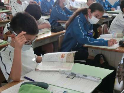 昨日の1年5組の社会・歴史分野の授業の様子です。