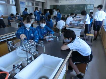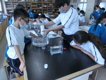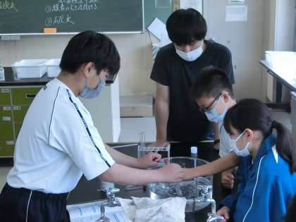 気体の集め方として3種類の方法があり、調べたい気体によってどの方法が適してるかを確認しながら実験を進めていました。