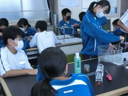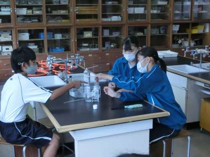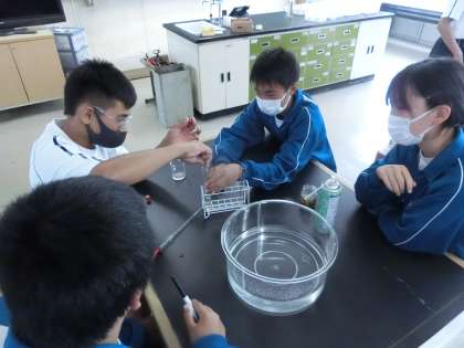 気体の集め方として3種類の方法があり、調べたい気体によってどの方法が適してるかを確認しながら実験を進めていました。
