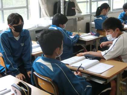 昨日の1年4組の理科の授業の様子です。