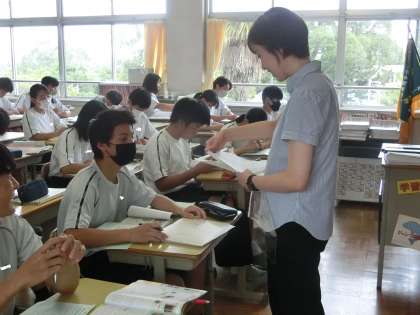 昨日の3年5組の社会・公民分野の授業の様子です。