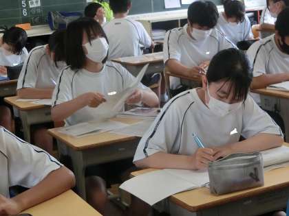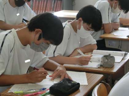先日取り組んだ学習診断テストの過去の問題を振り返り、各自で対策に取り組んでいました。