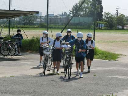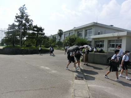 暑かった一日を終え、気の合う仲間と元気に下校していきます。