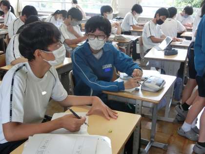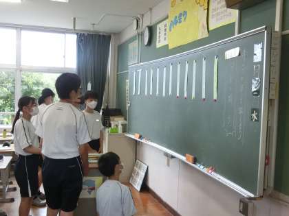 7/12 句会 1 公開日 2023/07/12 更新日 2023/07/12 各学年から 3年3組の国語の授業のようです。 「俳句を作って楽しもう」をテーマに進めてきた学習も、今日はいよいよ句会ということで、仲間の作品を鑑賞していました。