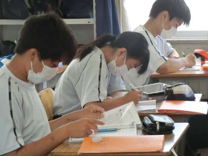「化学〜生物までの総復習をして、夏を迎えよう」をテーマに学習が進められていました。夏休み、家庭で一人で勉強することを想定して、総復習が目的ではありますが、理解が不十分なところを夏休みに入るまでに克服していこうというねらいもあります。