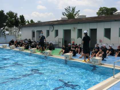 これまでの練習の成果を確認するクロールのタイム計測が行われていました。