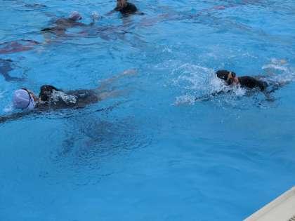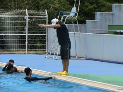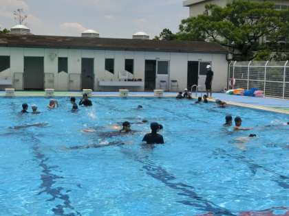 クロールや平泳ぎなど、最低限身につけておきたい泳法をしっかりとマスターするため、仲間との練習に取り組んでいました。