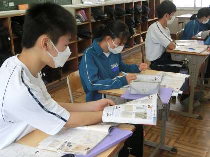 2年1組の社会・歴史分野の授業の様子です。