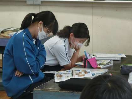 マーカーや色ペンを手に、制作された時代の背景や作品が表現していることなど、教科担任の解説をしっかりと書き込んでいました。