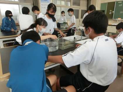 気体の性質を調べる実験が行われていました。