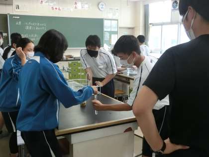 塩酸に金属(亜鉛やマグネシウム)を入れ、気体を集めます。水素であれば、マッチの火を近づけると爆発(小さなもの)し、水ができます。