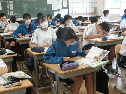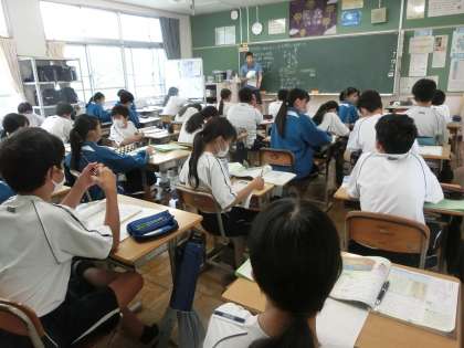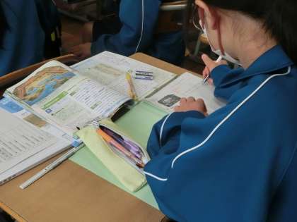 1年4組の社会・歴史分野の授業の様子です。