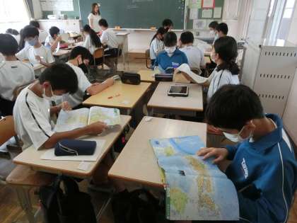 昨日の2年4組の社会・地理分野の授業の様子です。
