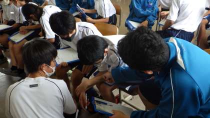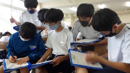 先週末の金曜日(14日)、2年生を対象に「区長さんの話を聴く会」が開催されました。これは総合的な学習の時間に学習を進めているキャリア・まちづくり学習の一環によるものです。