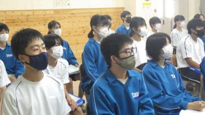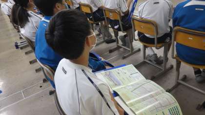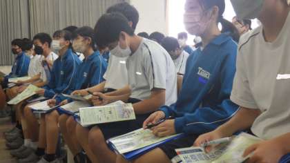 先週末の金曜日(14日)、2年生を対象に「区長さんの話を聴く会」が開催されました。これは総合的な学習の時間に学習を進めているキャリア・まちづくり学習の一環によるものです。