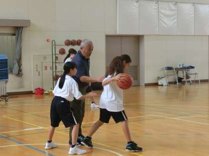 写真は、バスケットボール部の様子です。