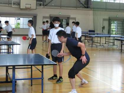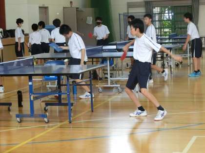 7/18 三連休中の部活動 24 公開日 2023/07/18 更新日 2023/07/18 特別活動 酷暑となった三連休でしたが、涼しい時間帯に切り替えて活動を行いました。 写真は、卓球部の様子です。 この日は、3年生の引退し合いが行われていました。多くの保護者の方々にもその様子を参観いただきました。