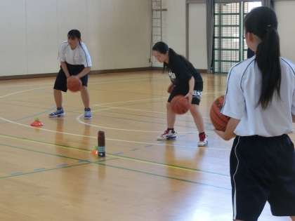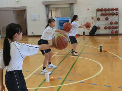写真は、バスケットボール部の様子です。