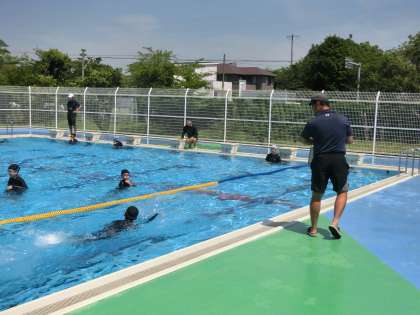泳法のテストやタイム計測が行われていました。