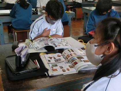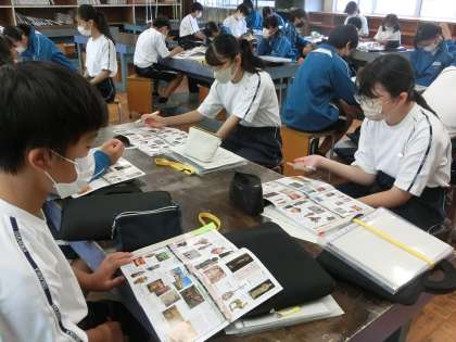 マーカーや色ペンを手に、制作された時代の背景や作品が表現していることなど、教科担任の解説をしっかりと書き込んでいました。