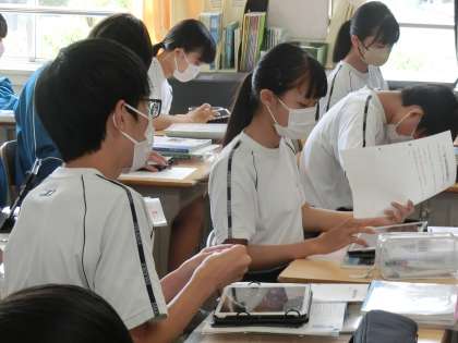 その後、「令和の著作権ルールブック」と題された新たな課題のプリントが配布され、ルールづくりに真剣に取り組んでいました。
