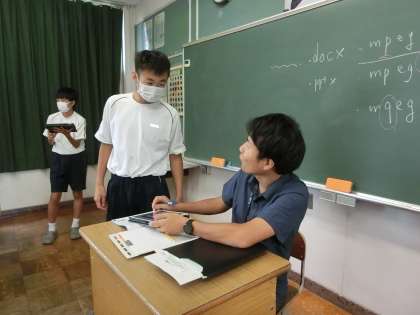 プログラミング学習で、「オリジナルゲームをより楽しくするには?」をテーマに制作を続けてきたソフトが完成し、教科担任に試してもらっていました。