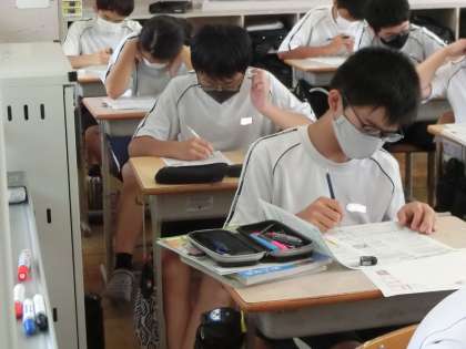 7/19 事前にプリントに取り組む意味 2 公開日 2023/07/19 更新日 2023/07/19 各学年から 2年4組の社会の授業の様子です。 夏休みの課題テキストについている復習プリントに取り組んでいました。 夏休み中に弱点を克服するため、事前にプリントに取り組み、弱点を洗い出していきます。効率的な学習と期待通りの結果を手にすることができるよう、工夫して学習を進めています。