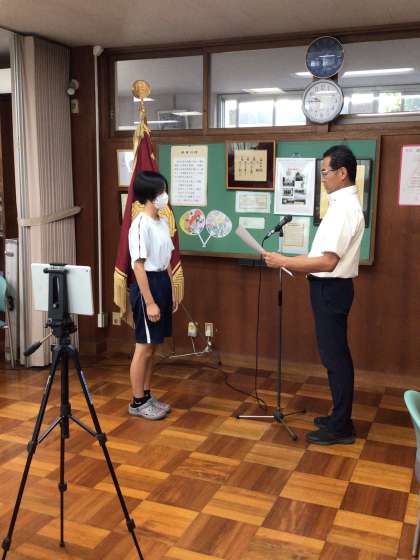 本日の2時間目に「夏季休業前全校集会」がオンラインで行われました。