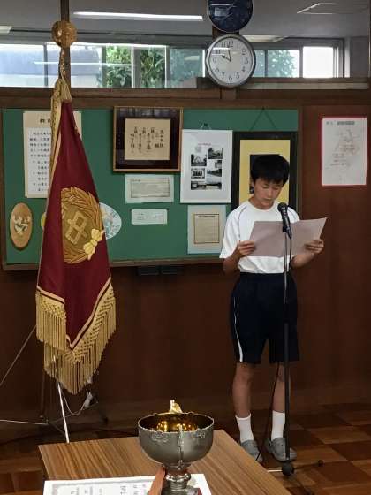 表彰伝達のあとは、各学年の代表者によるスピーチと中学生主張作文の発表が行われました。