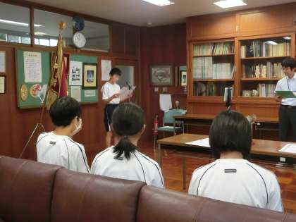本日の2時間目にオンラインで開催された、「夏季休業前全校集会」の様子です。