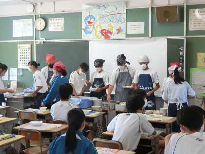 夏休みの翌日に控えての給食の様子です。