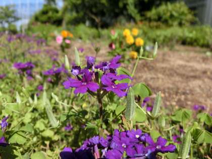 職員室前の花壇に咲くバーベナ。別名ビジョザクラ(美女桜)とも呼ばれるそうです。ちなみに、花言葉は「魔力」「魅力」で、その由来は次のとおりです。