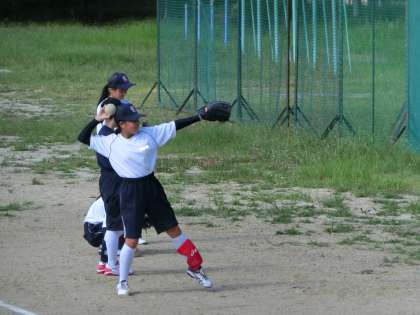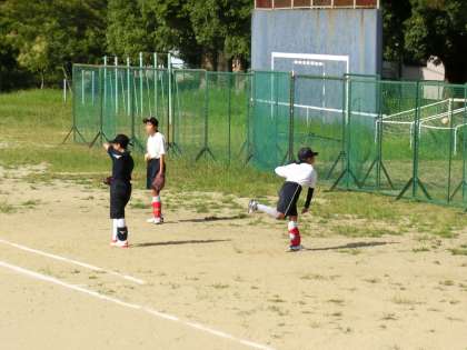 前林中の生徒と合同練習です。暑さが厳しくなる時間帯での活動を避けるため、早朝から練習に取り組んでいました。