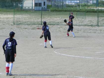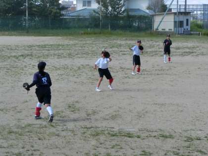 前林中の生徒と合同練習です。暑さが厳しくなる時間帯での活動を避けるため、早朝から練習に取り組んでいました。