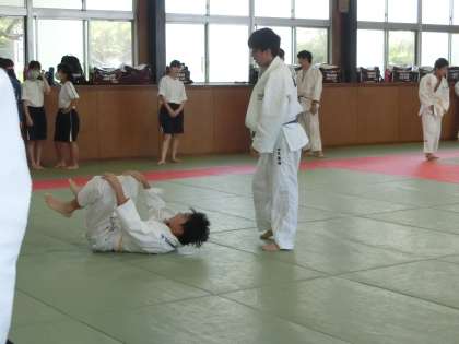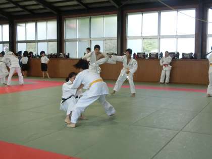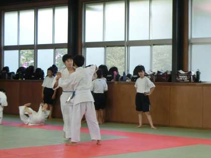 県大会出場を決めた生徒たちが熱心に練習に励んでいました。また、惜しくも県大会出場を逃してしまった生徒も稽古の相手をかって出てくれていました。暑さが厳しくなる時間帯での活動を避けるため、早朝から練習に取り組んでいました。