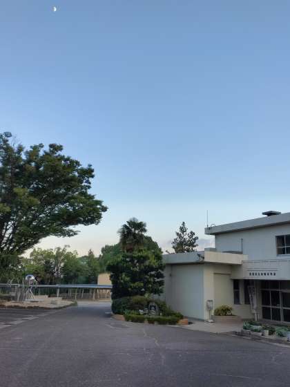一方、南東の空を見上げるとこちらは雲はなく、きれいな青空でした。そして頭上高くには月が見えます。