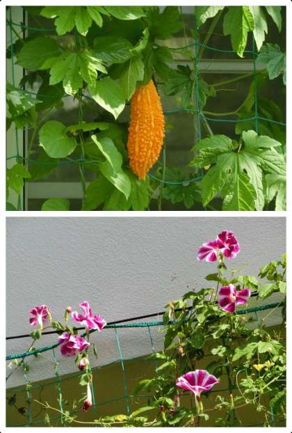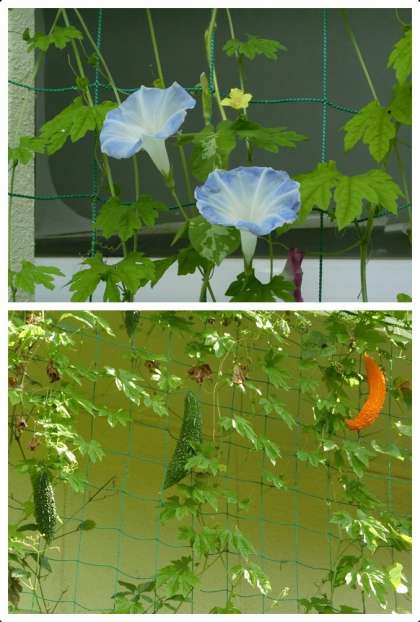 夏休み真っ盛りといった様子を写真に収めることができました。アサガオとゴーヤともに技術の授業で植えた緑のカーテンになるものです。色とりどりの花や実は、暑さよりも涼しさを演出してくれているようです。