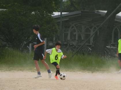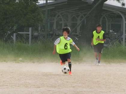 基礎メニューにしっかりと取り組んだあと、ミニゲームで試合の感覚をつかんでいきます。この繰り返しで自分の強みや弱点を確認し、次回の練習でも目的をもって活動に取り組んでいきます。暑い中の限られた時間での練習ですが、しっかりと体力と技術を身につけてほしいと思います。