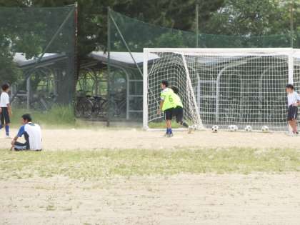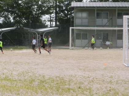 基礎メニューにしっかりと取り組んだあと、ミニゲームで試合の感覚をつかんでいきます。この繰り返しで自分の強みや弱点を確認し、次回の練習でも目的をもって活動に取り組んでいきます。暑い中の限られた時間での練習ですが、しっかりと体力と技術を身につけてほしいと思います。