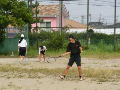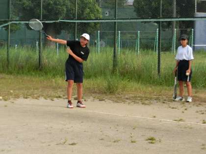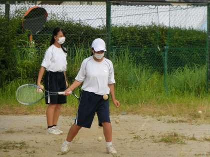 2年生のコート中に響き渡る元気な声は今日も健在です。1本1本を丁寧に打ち、確実に力を高めています。