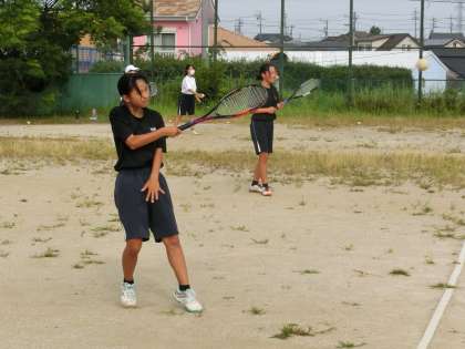 2年生のコート中に響き渡る元気な声は今日も健在です。1本1本を丁寧に打ち、確実に力を高めています。