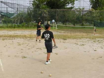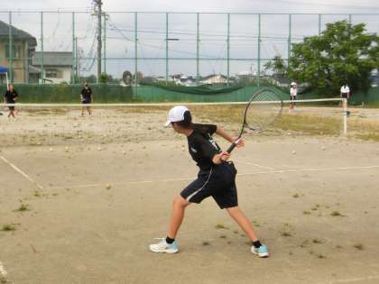 2年生のコート中に響き渡る元気な声は今日も健在です。1本1本を丁寧に打ち、確実に力を高めています。