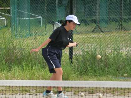 2年生のコート中に響き渡る元気な声は今日も健在です。1本1本を丁寧に打ち、確実に力を高めています。