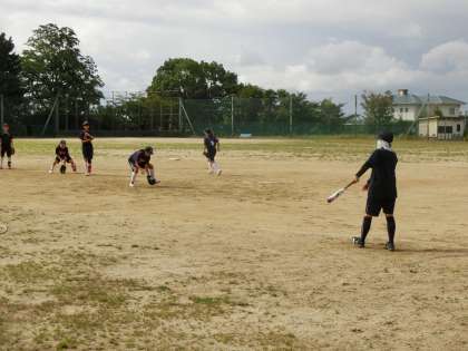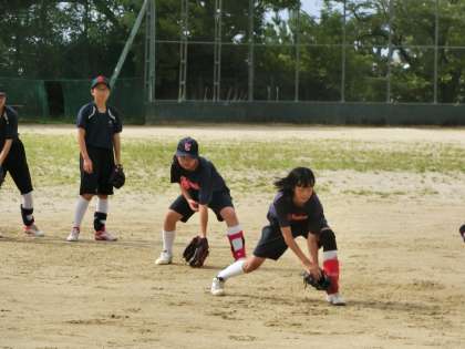 前林中生徒と合同練習です。経験豊富なたくさんの指導者に、早朝からしっかり指導を受けています。ミスをしてしまったあとも、「もう1本お願いします!」と声が出ていたり、笑顔でプレーし続けている姿に見ていてうれしくなりました。