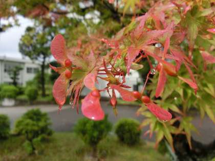 このプロペラ状の種のことを専門用語で「翼果(よくか)」と言います。これが夏の間、木にぶら下がって、少しずつ乾燥して茶色くなった頃、風に乗って木から旅立ち、プロペラのようにくるくると回転して着地した場所で発芽していくという仕組みです。植物たちの子孫を残す力はすごいものです。