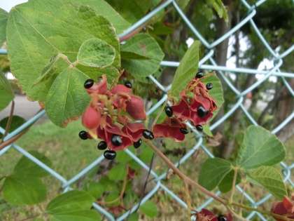 校内に自生、もしくは古くからしっかり根付いている植物の実です。写真上から、「フジ(藤)」「タンキリマメ(痰切豆)」「ヘクソカズラ(屁糞葛)」のそれぞれの実です。校内のどこで見ることができるか想像してみてください。また、実際に確認してみるのもいいかもしれませんね。(近所に同じ実がないか、探してみるのもいいかも…)