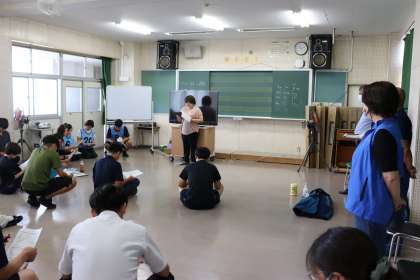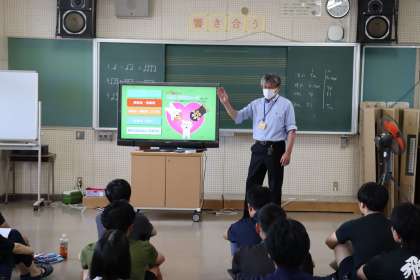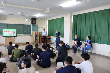 緊急時に養護教諭が不在でも、迅速な判断と適切な対応ができるようにするために行いました。南消防署の署員さんや市民インストラクターさんを講師としてお招きし、食物アレルギーの対応と活動時の頭部外傷を想定した研修です。