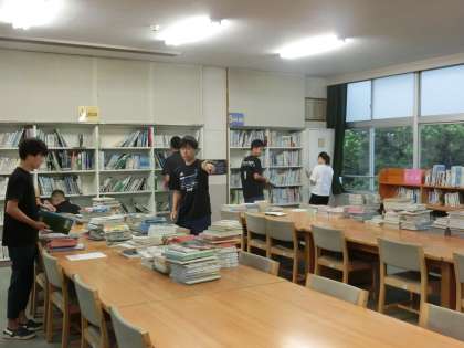 本日の午前中、先生方に協力していただき、図書室の本の整理を行いました。各教科で分かれてそれぞれの分野での作業となりました。