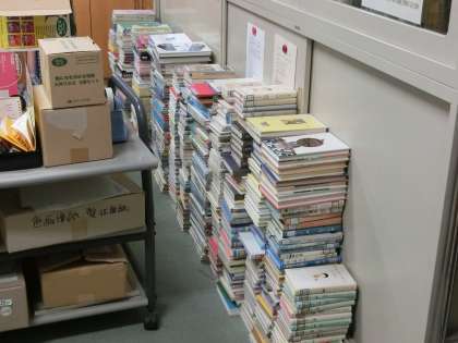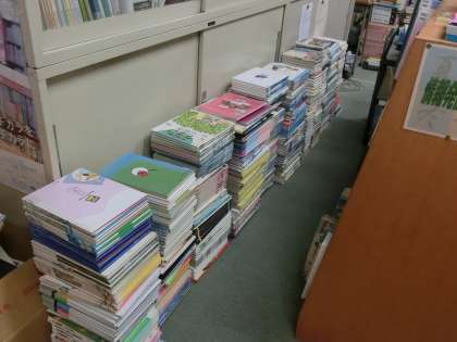 購入から20年以上経つもの、傷みや汚れの激しいものを廃棄処分していきます。今回の作業だけで、1000冊近くの本を廃棄しました。